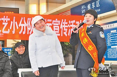 为了给回乡旅客营造更温馨舒适的出行环境,大同铁路公安处文艺轻骑兵小分队近日带着精心编排的文艺节目走入车站候车室,为旅客带去欢笑和温暖。