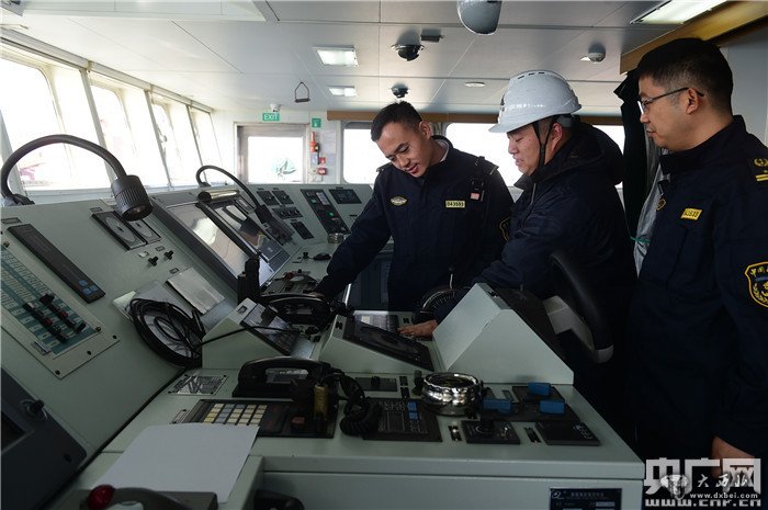 登船、出示执法证件、说明来意……一套标准化流程对于沧州大港海事处神华港海巡执法大队的周佳和马云合这对搭档来说已经熟记在心。马云合说,对停靠船舶的检查,项目繁多,要求细致。"主要是船舶检验证书、一些救生消防的检验报告、一些航海日志、轮机日志以及防污染方面的一些检查。主要是为了保障航行安全和环保无污染。"