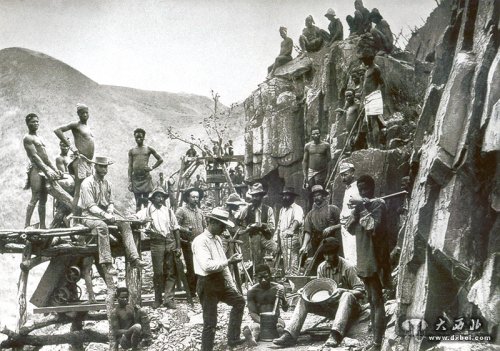 殖民掠夺是资本主义原始积累的重要途径。早期殖民掠夺的方式,包括奴隶贸易、攫取金银等。到了19世纪末,资本主义进入了帝国主义阶段,殖民掠夺形式由商品输出为主变成了资本输出为主,殖民地国家和地区依然遭受着残酷掠夺。图为1888年摄于南非的反映英国殖民者开采金矿、掠夺黄金的照片。