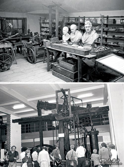 詹姆斯·瓦特是第一次工业革命的重要人物,他制造出第一台有实用价值的蒸汽机,在工业上得到广泛应用,开辟了人类利用能源新时代,使人类进入"蒸汽时代".上图是仿建的瓦特工作室,下图是瓦特制成的蒸汽机。以上皆摄于伦敦科学博物馆。 新华社发