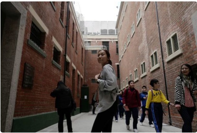 在香港港岛,旅客在参观前身为中区警署建筑群的“大馆”。新华社记者王申摄