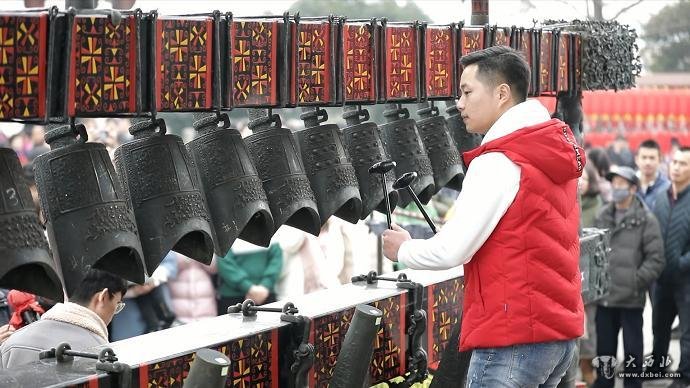长江边,楼阁下,年味正浓。流转千年的编钟编磬,用雄浑空灵的乐章,将人们的注意力从喧闹的春节氛围中聚拢。一曲《我和我的祖国》把家和国紧紧相系,联结在了一起。从惊喜意外到心潮澎湃,全场近千人在新春佳节向祖国深情表白。
