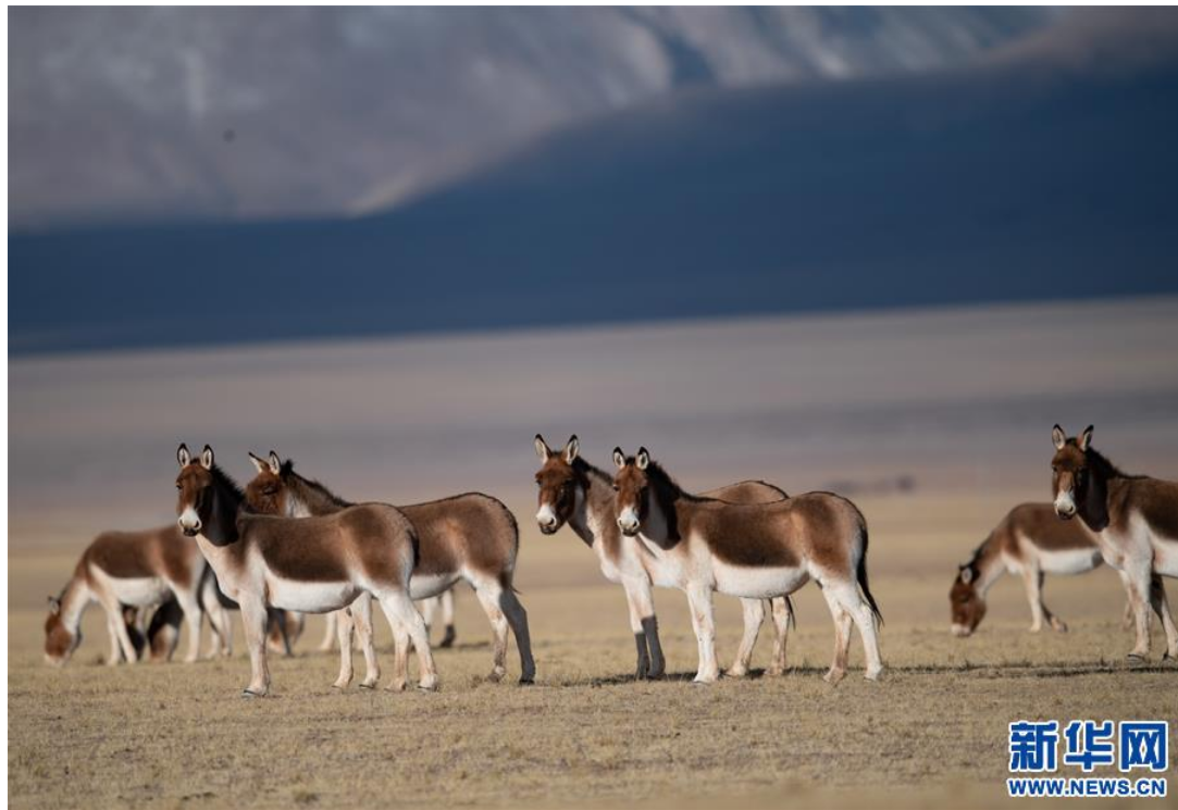 双湖境内的藏野驴(1月31日摄)。新华社记者普布扎西摄