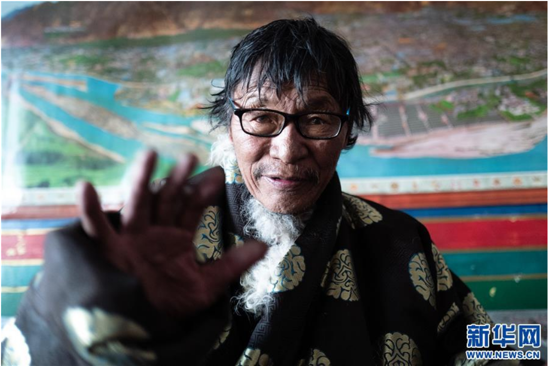 现年77岁的白玛老人讲述当年的情况,43年前,为寻找更好的草场、更好的生活,白玛老人从那曲地区申扎县,“无畏”地走进了双湖。自1974年,从申扎县嘎措乡到双湖嘎措乡,老人担任乡党委书记一直到2002年(1月31日摄)。新华社记者普布扎西摄
