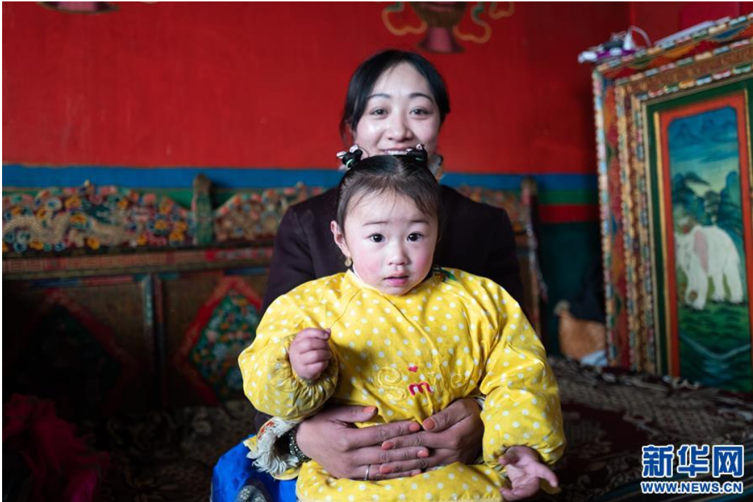 双湖县嘎措乡瓦日香琼村牧民在家照看孩子(1月31日摄)。新华社记者普布扎西摄