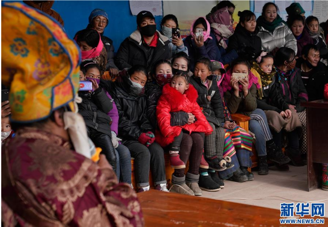 双湖县嘎措乡的牧民在观看节日期间文艺下乡活动的表演(1月31日摄)。新华社记者普布扎西摄