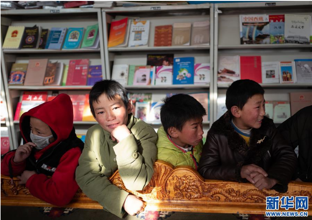 双湖县嘎措乡的牧民孩子在阅览室里(1月31日摄)。新华社记者普布扎西摄