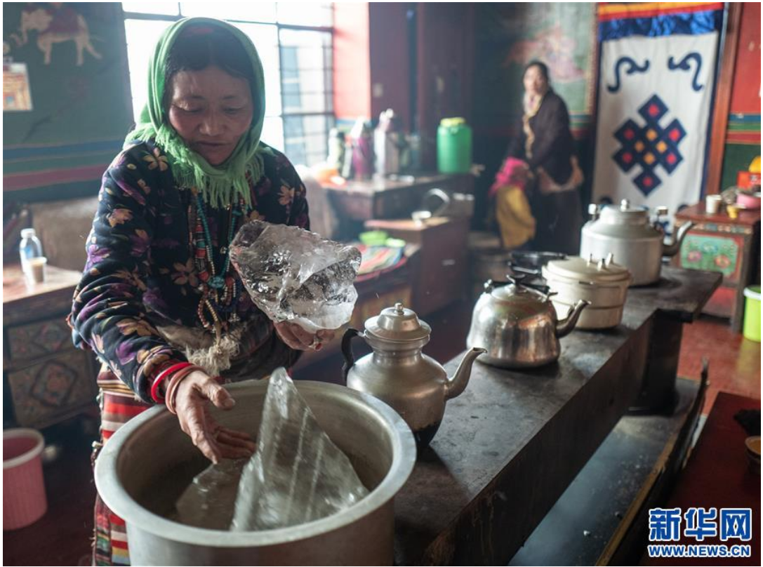 双湖县嘎措乡牧民在化冰烧水(1月31日摄)。新华社记者普布扎西摄