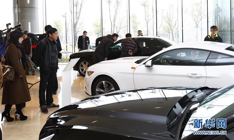 市民在上海自贸区平行进口汽车展示交易中心参观(2015年2月15日摄)。新华社记者方喆摄