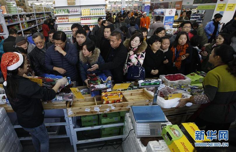 市民在位于上海外高桥的进口商品直销中心选购进口水果(2014年12月26日摄)。新华社记者方喆摄