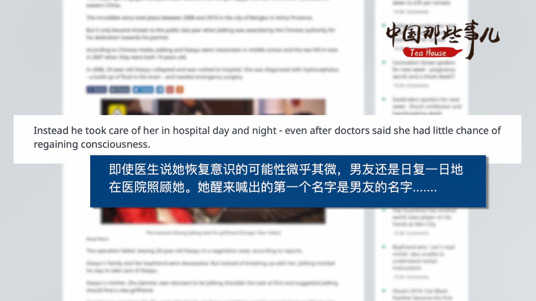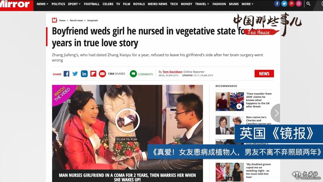 英国《镜报》不但转载了这个视频,还发表了一篇题为《真爱!女友患病成植物人,男友不离不弃照顾两年》的文章,对他们的故事大加赞赏。