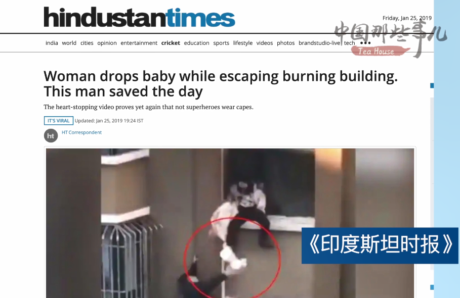 《印度斯坦时报》1月25日报道了这则消息,高度赞扬了男子的见义勇为。文章指出,这个视频,尤其是这个男子的举动引起网民的共鸣。许多人都为他点赞,叫他英雄。