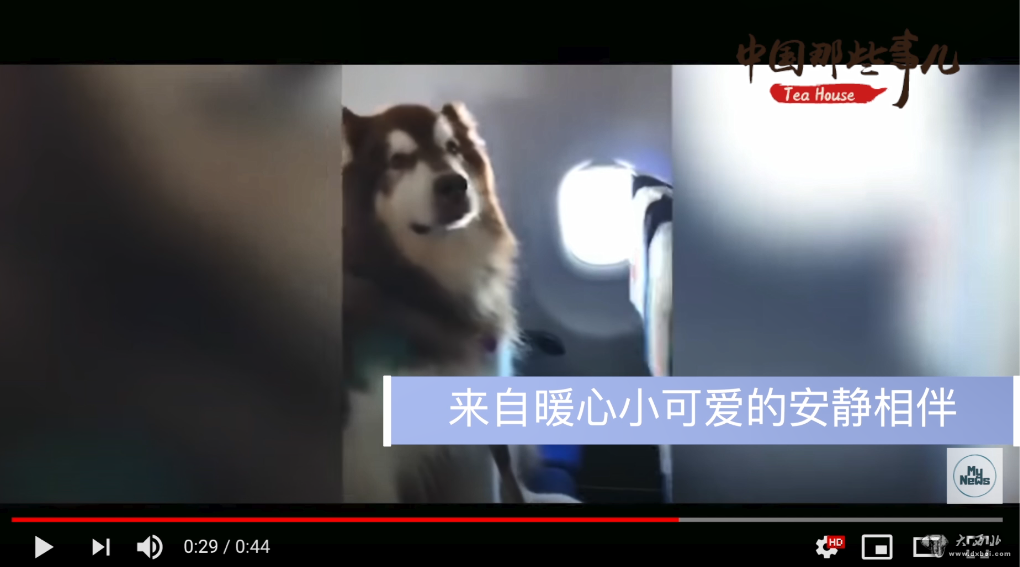 2019年1月24日“MYNEWSTV”在YouTube上发布了题为《一只可爱的阿拉斯加犬与主人一同乘坐中国航班》的视频。这段视频发布不久,点击量就高达42万次。