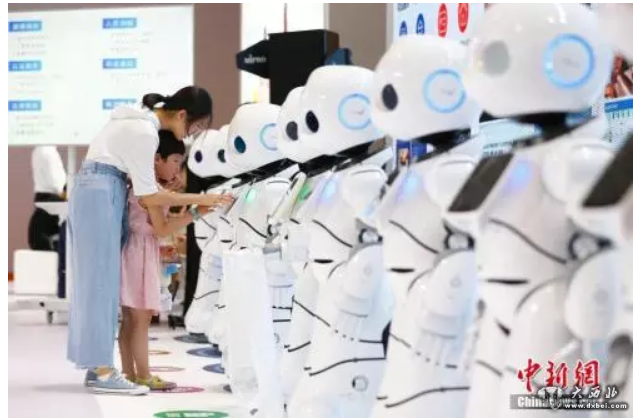 图为小朋友与机器人互动。中新社记者富田摄