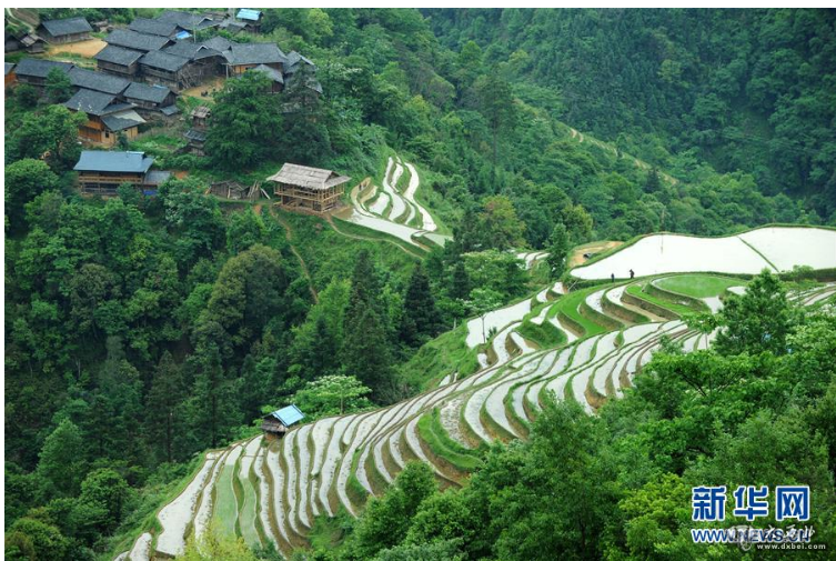 贵州省榕江县计划乡阳开苗寨梯田景观(2018年5月7日摄)。新华社记者杨文斌摄