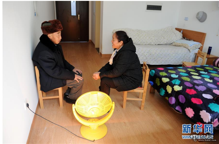贵州省贵安新区高峰镇麻郎村村支书刘乔英在敬老院与老人谈心(2月2日摄)。新华社记者杨文斌摄
