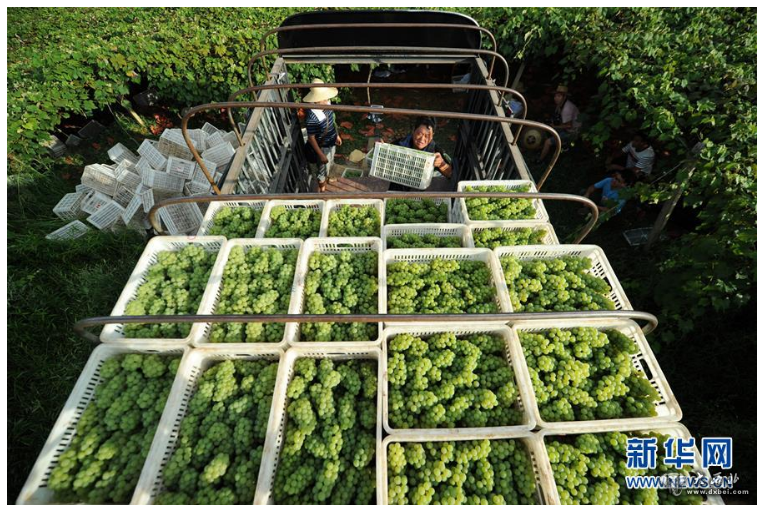 收购商在贵州省玉屏县新店生态葡萄现代农业园区收购水晶葡萄(2018年7月30日摄)。新华社记者杨文斌摄