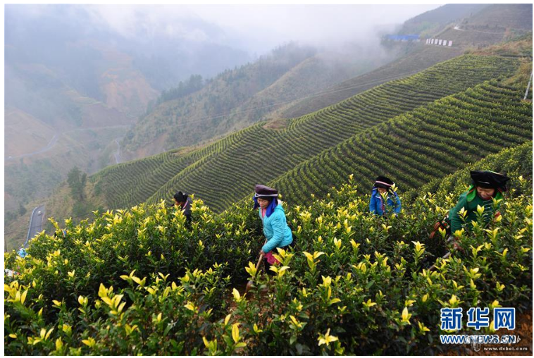 苗族群众在贵州省丹寨县排调镇甲石村管护茶场(2018年1月20日摄)。新华社记者杨文斌摄