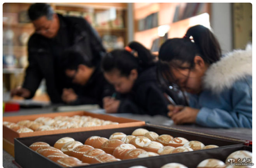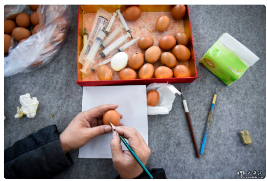 逯文博做的这项技术活叫蛋雕,由民间喜庆婚娶和祝福庆寿时赠送彩蛋的习俗发展而来,是一种历史悠久的技艺。今年春节前后,在惠农区一些民间艺人的努力下,这门老技艺在矿中社区孩子之间流行起来,焕发出新的生机。