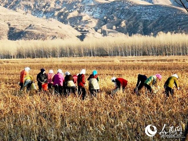 小庙子村的村民们正在采收中草药射干的种子。(段国栋摄)