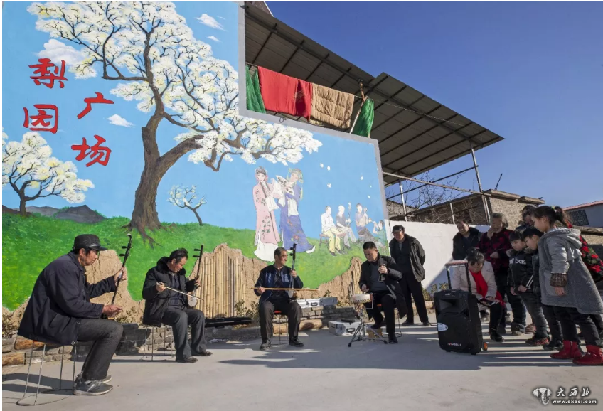 △1月22日,河南省郑州市,新郑市新村镇梨园村,村民住房外墙上的戏曲元素壁画格外亮眼,戏曲文化建设让乡村焕发新的生机。(图自视觉中国)