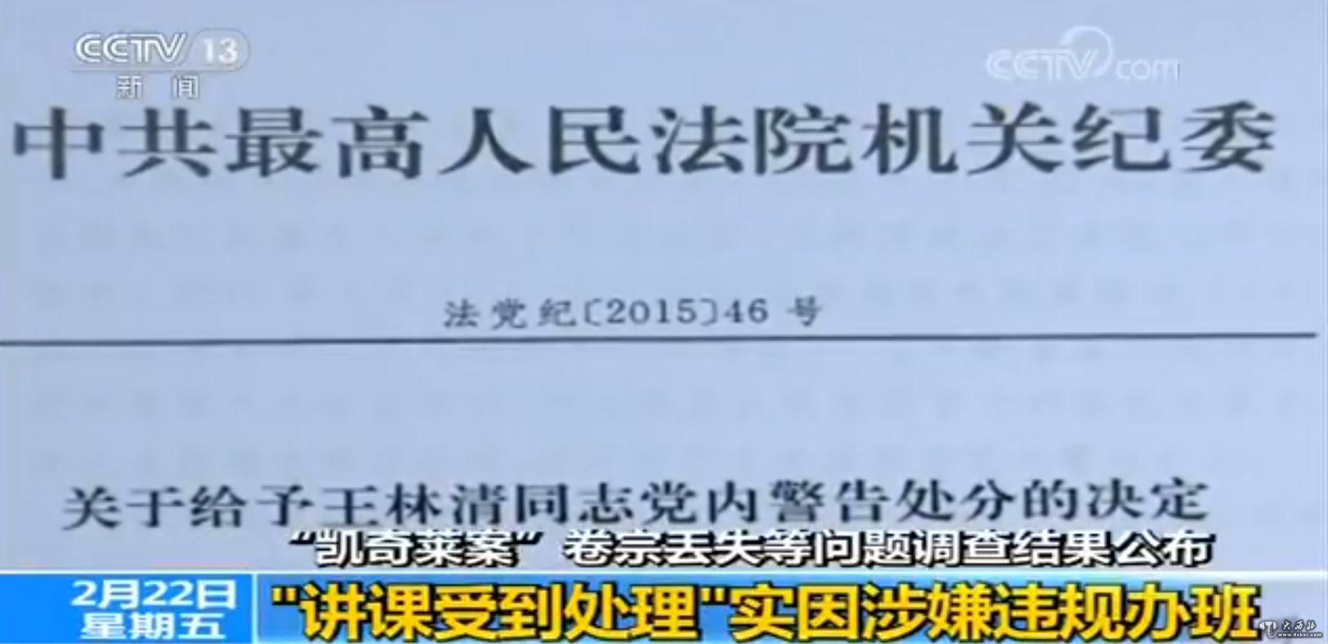 2014年12月,因王林清违规参与营利性活动,依据《人民法院工作人员处分条例》有关规定,最高人民法院监察局决定给予王林清记过处分。2015年4月,依据《中国共产党纪律处分条例》有关规定,最高人民法院机关纪委决定给予王林清党内警告处分。
