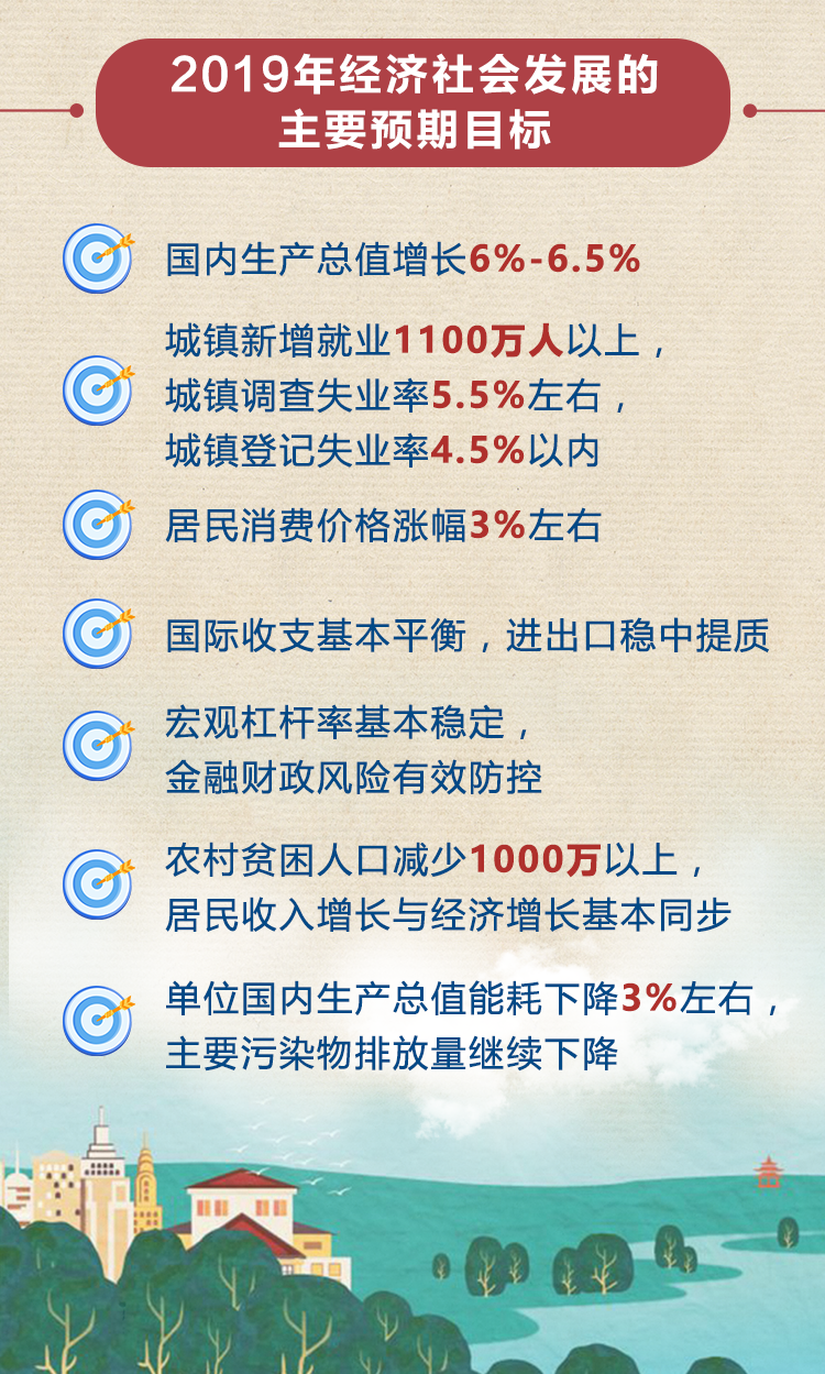 3月5日上午9时,十三届全国人大二次会议在人民大会堂开幕,国务院总理李克强向大会作政府工作报告,并提出2019年经济社会发展的主要预期目标——