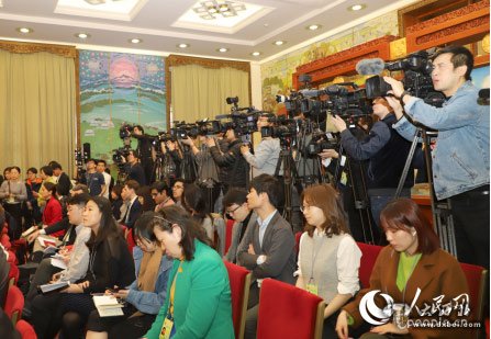 西藏代表团开放日吸引众多媒体。(人民网记者吴超 摄)