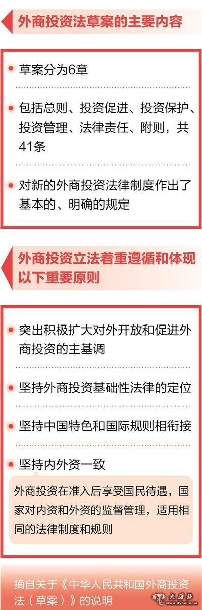 “外商投资法草案明确规定了多项促进内外资企业规则统一、促进公平竞争方面的内容,让外商投资企业心里更踏实。”国家开发银行营运管理局局长徐元代表认为,在经济全球化遭遇波折、贸易保护主义抬头的背景下,我国通过完善法律制度,以立法的形式确立准入前国民待遇加负面清单管理等制度,大幅放宽了市场准入,将营造稳定、透明、可预期和公平竞争的市场环境。