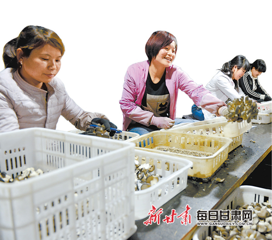 民乐县工业园区附近农民在食用菌生产车间实现本土化务工(资料图)。
