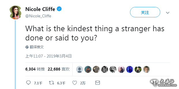 妮科尔·克利夫在推特发起话题:陌生人对你做过最善良的事儿或说过最善意的话是什么?