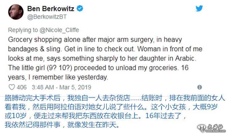中国日报网3月11日电陌生人对你做过最善良的事儿是什么?这可能是个非常简单的问题,答案却往往能触人心弦。近日,美国犹他州女作家妮科尔·克利夫(NicoleCliffe)在社交网站Twitter上就问了这样一个问题,便立刻成为了热点话题。