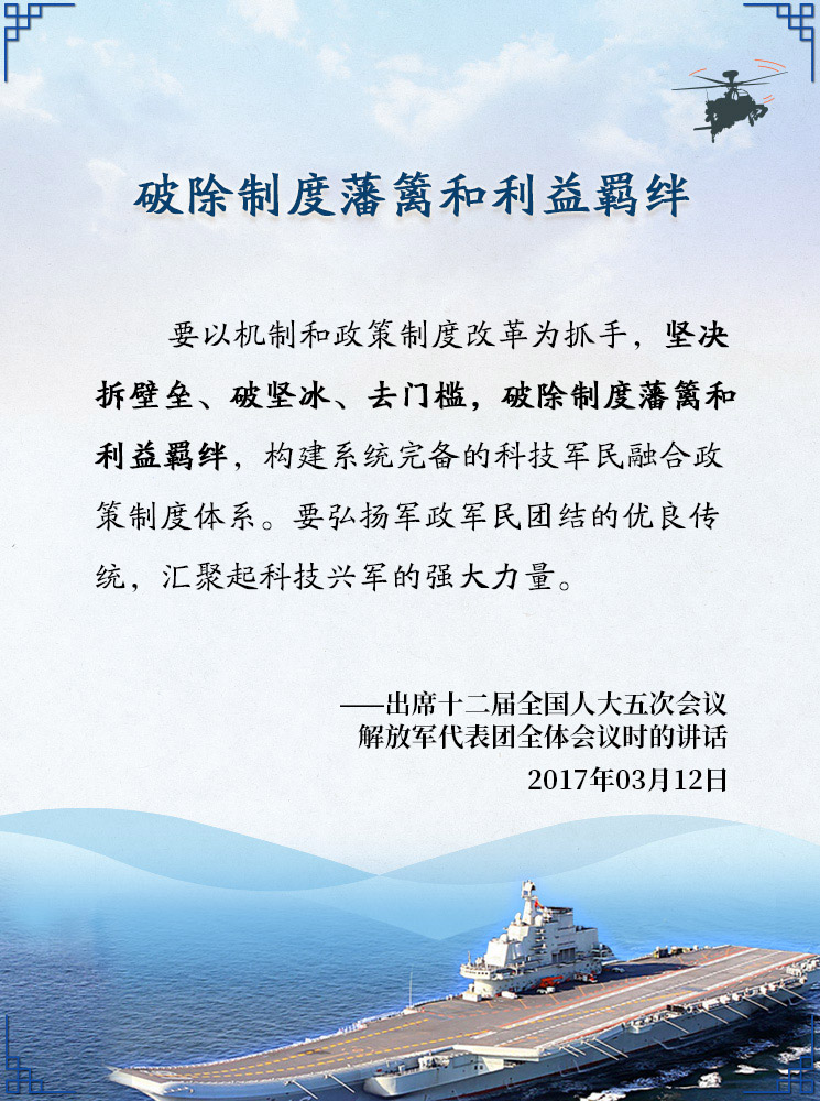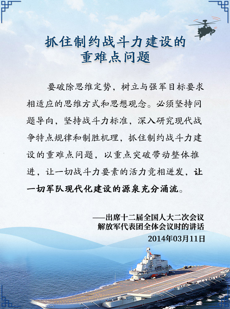 “军地双方要树立一盘棋思想”,“清‘淤点’、通‘堵点’、解‘难点’”,“坚决拆壁垒、破坚冰、去门槛”……这些比喻形象生动,鲜明地体现了习近平强军思想。央视网特撷取其中妙言隽语,与大家一起学习习近平的强军之喻!