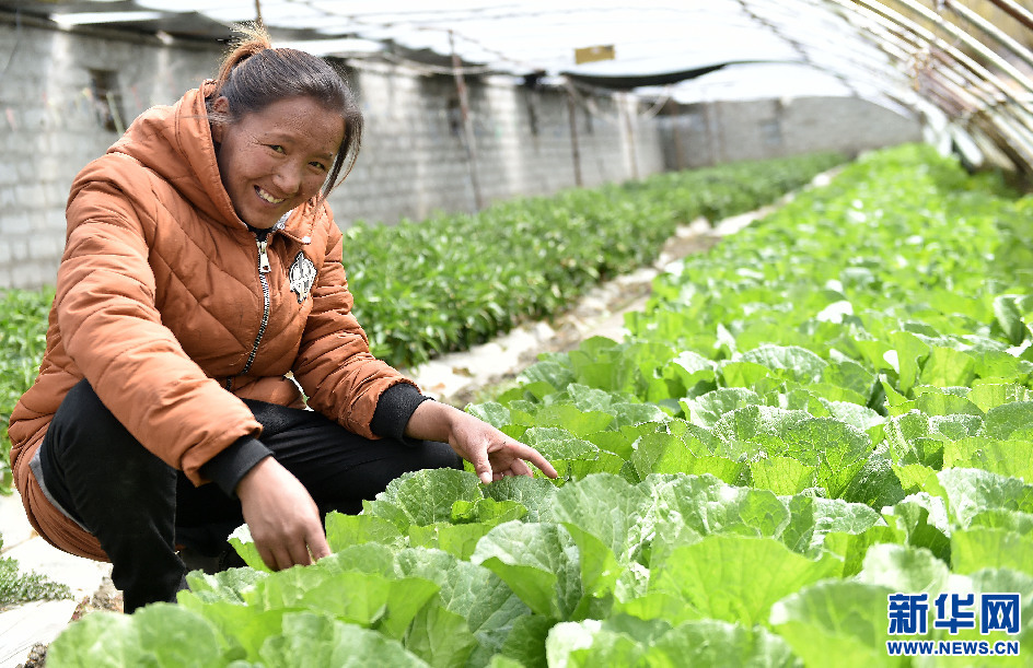 2018年3月27日,克松村种菜能手白玛央宗在自己承包的温室里劳作。新华社记者觉果摄