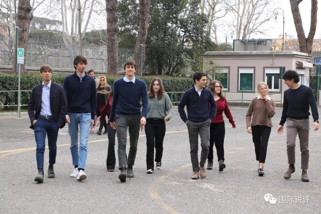 致信习近平主席的罗马国立住读学校学生走在校园里