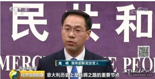商务部新闻发言人高峰:意大利历史上是丝绸之路的重要节点,我们欢迎意大利积极参与共建“一带一路”。中意两国在拓展贸易和投资、基础设施建设、金融、卫生、旅游等领域都有较大的合作空间。