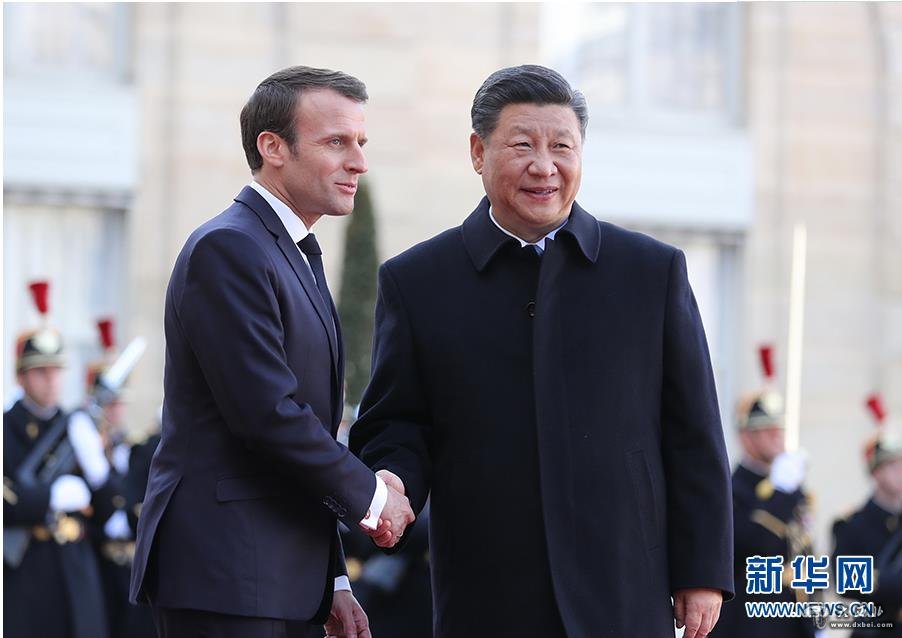 3月25日,国家主席习近平在巴黎爱丽舍宫同法国总统马克龙会谈。会谈前,马克龙在凯旋门为习近平举行隆重、盛大的欢迎仪式。新华社记者姚大伟摄