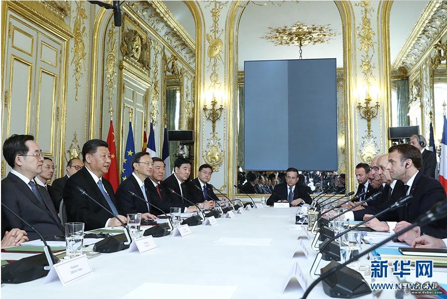3月25日,国家主席习近平在巴黎爱丽舍宫同法国总统马克龙会谈。新华社记者谢环驰摄