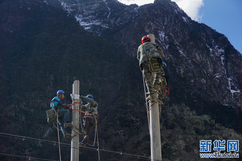工人在玉麦乡境内施工(2017年12月17日摄)。新华社发(白峰摄)