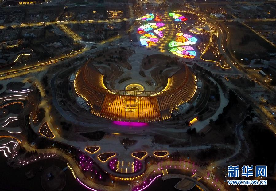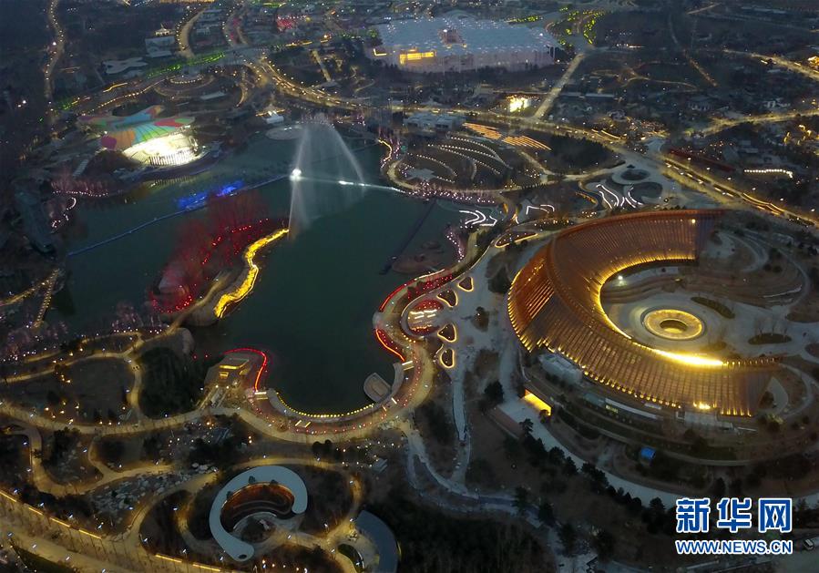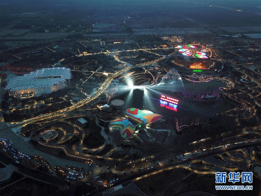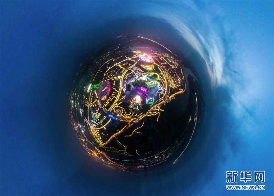 这是3月26日无人机拍摄的北京世园会园区“小行星”效果图(电脑合成)。 截至3月28日,北京世园会园区建设工作已进入冲刺阶段,园区基本成形,公共区域主要建筑全面完工,室内布展正在进行中。 新华社记者 王建华 摄