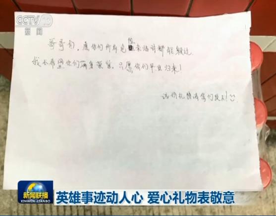 央视网消息(新闻联播):有一种精神生生不息,有一种感动穿越时空。最近,四川木里森林火灾扑救中英勇牺牲的烈士们感动了人们。大家痛心的同时,也把目光聚焦在身边的消防员身上,纷纷以各种方式送去心意,留下祝福。