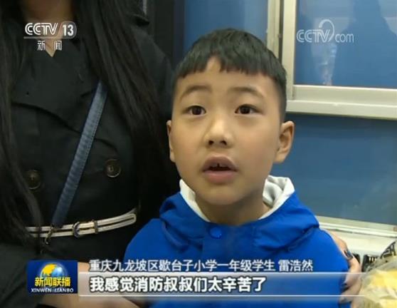 4日晚上8点多,重庆九龙坡消防救援支队歇台子中队门口,一位小朋友提着两袋水果,徘徊一会儿后,在家长陪同下走进了值班岗亭。