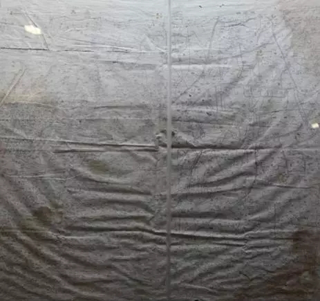 这件遗物是杨靖宇1931-1933年在哈尔滨进行抗日活动时穿的大衫。大衫长120厘米、宽50厘米,灰色毛哔叽料,有几块小补丁。