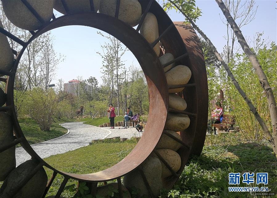 4月7日,游人在北京广阳谷城市森林公园内休闲游览。新华社记者鲁鹏摄
