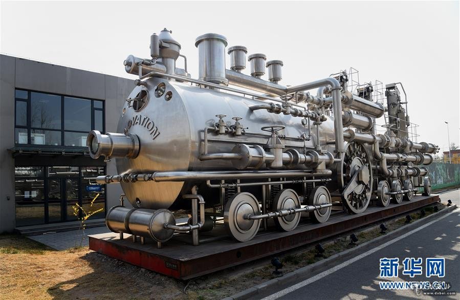 在北京市朝阳区的E9区创新工场,一个由360多个奶制品生产构件组成的“火车头”造型十分引人注目,寓意“创新发展驶向美好未来”。