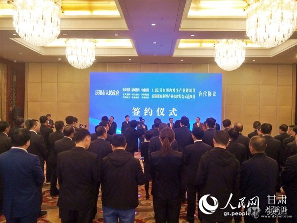 人民网兰州4月9日电(高翔)4月8日下午,甘肃庆阳市与圣农集团、正大集团及其他战略合作企业在兰州举办农业产业化项目签约仪式。当日签约的项目为圣农集团1.2亿白羽肉鸡全产业链建设项目和正大集团现代新农业建设项目。项目成功签约对庆阳市培育龙头企业、推动产业脱贫、打好打赢脱贫攻坚战意义重大。