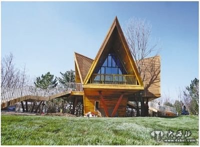 以黑龙江木骨架建筑和游牧民居为形态原型的森林树屋。