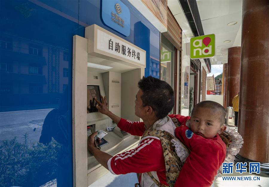 4月13日,云南省贡山县独龙江乡村民在自助终端上办理电信业务。新华社记者江文耀摄