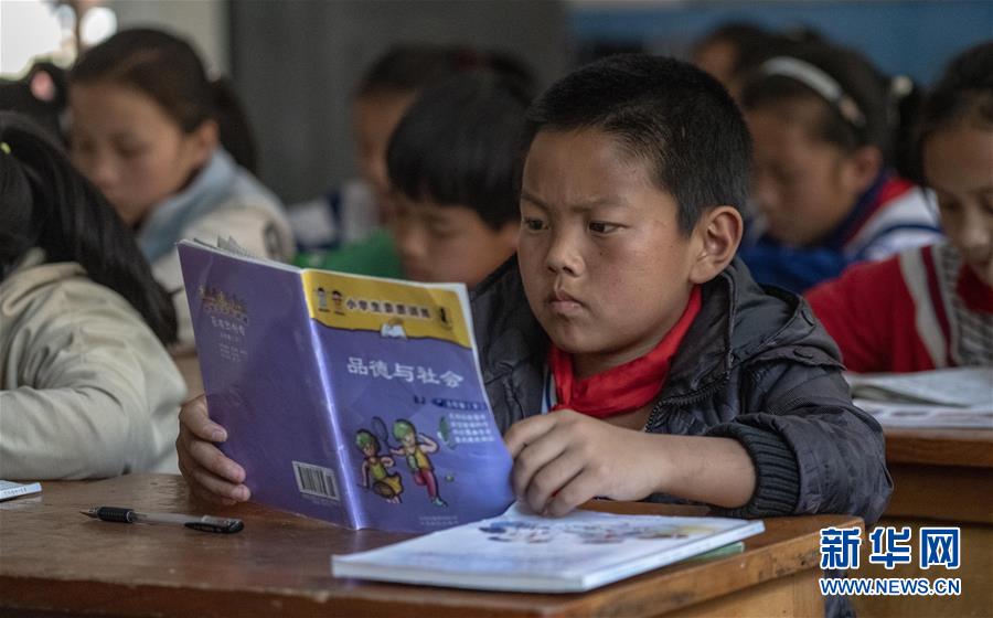 4月13日,云南省贡山县独龙江乡中心小学的孩子们在上课。新华社记者江文耀摄