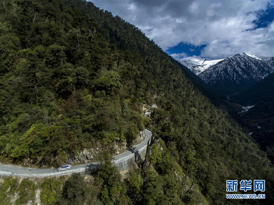 这是4月13日无人机拍摄的贡山县通往独龙江乡的公路。新华社记者江文耀摄